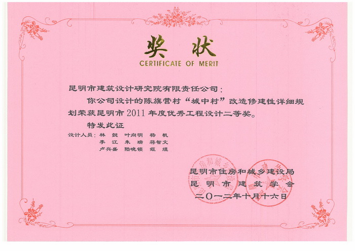 ‘陳旗營(yíng)村“城中村”改造修建性詳細(xì)規(guī)劃’榮獲市2011年度優(yōu)秀工程設(shè)計(jì)二等獎(jiǎng)