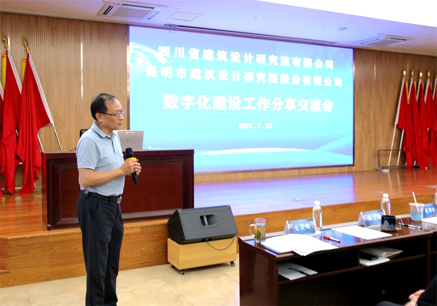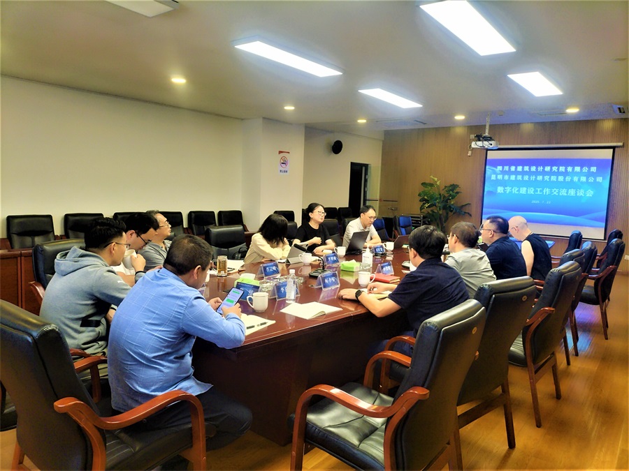 7月22日,四川省建筑設(shè)計(jì)研究院有限公司(以下簡(jiǎn)稱“川建院”)副總經(jīng)理蔣勇杰,電氣總工程師、數(shù)字技術(shù)部部長(zhǎng)胡斌,副總建筑師趙紅蕾,數(shù)字設(shè)計(jì)研究中心負(fù)責(zé)人李明燕,高級(jí)財(cái)務(wù)主管曹忠文等一行五人到訪公司,與公司信息及數(shù)字化轉(zhuǎn)型工作領(lǐng)導(dǎo)小組成員、數(shù)字化及信息化委員會(huì)成員、技術(shù)質(zhì)量部全體成員、其它職能部門正副職及各生產(chǎn)部門的管理團(tuán)隊(duì)約80人舉行了交流會(huì)。