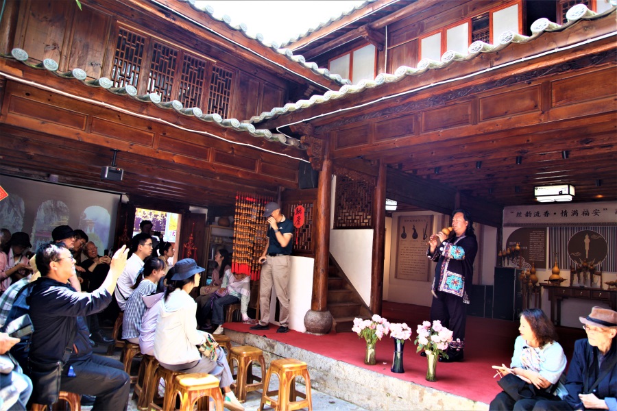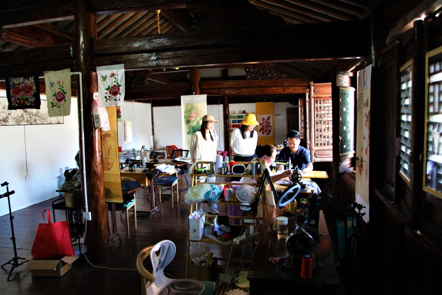 福安村創(chuàng)新傳統(tǒng)民居保護利用模式,“以修代租”,通過流轉(zhuǎn)農(nóng)戶傳統(tǒng)民居15年的使用權,由村集體組織,整合各方資金,按照“修舊如舊”的原則進行修繕,并積極培育“非遺+美食”、“非遺+研學”、“非遺+刺繡”等業(yè)態(tài),積極引入文化名人建立“名師工作室”,鼓勵本村村民就地創(chuàng)業(yè),返鄉(xiāng)創(chuàng)業(yè),最具代表性的“福安六坊”,包含中國農(nóng)業(yè)大學李小云教授專家工作站—福藜坊、傳統(tǒng)美食—福源坊、非遺葫蘆絲研學—福祿坊,非遺刺繡—福珍坊,郭怡芳藝術工作室—福憶坊以及村史館—福安坊。晉寧區(qū)于2023年列為云南省傳統(tǒng)村落集中連片保護利用示范縣,福安村作為重點村之一,利用省級補助資金修繕的司氏民居和楊氏民居,已由社會主體租賃,成為茶藝展示中心及歷史文化保護博士工作點。