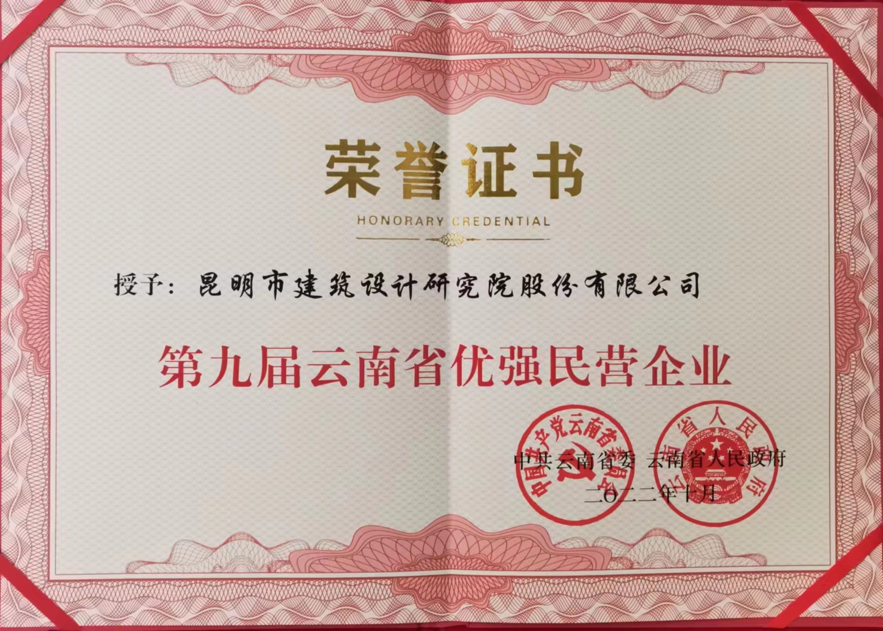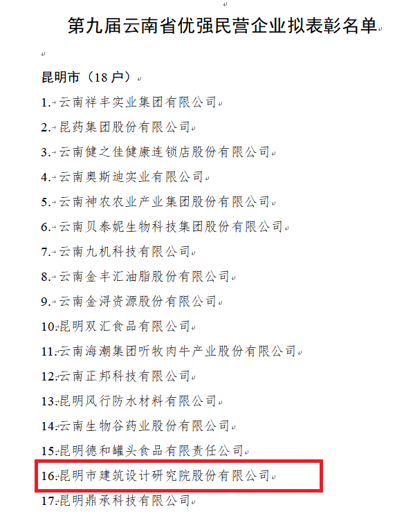 日前,在第九屆云南省民營經(jīng)濟(jì)先進(jìn)單位和先進(jìn)個(gè)人評(píng)選表彰中,我公司被中共云南省委、云南省人民政府授予“云南省優(yōu)強(qiáng)民營企業(yè)”稱號(hào)。云南省獲此殊榮的民營企業(yè)僅有97家,昆明也僅有18家。