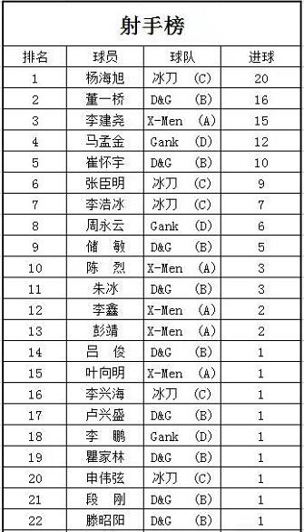 中場(chǎng)休息,兩隊(duì)隊(duì)員都針對(duì)兩方陣容做出針對(duì)性調(diào)整,下半場(chǎng)異再戰(zhàn),前15分鐘雙方攻守相對(duì)平衡,比賽很精彩,卻很難取得進(jìn)球,但雙方都在不斷嘗試著進(jìn)攻,經(jīng)過幾次嘗試冰刀隊(duì)率先打破下半場(chǎng)僵局5:4領(lǐng)先,隨后再下一成6:4領(lǐng)先,D&G隊(duì)再次做出人員調(diào)整,加強(qiáng)前場(chǎng)逼搶,取得立竿見影的效果,迫使對(duì)方禁區(qū)內(nèi)范規(guī),D&G隊(duì)獲得一個(gè)點(diǎn)球,由隊(duì)長段剛主罰命中,D&G隊(duì)扳回一球,接下來的比賽冰刀隊(duì)斷續(xù)加強(qiáng)進(jìn)攻,最終以9:5的比分取得勝利。