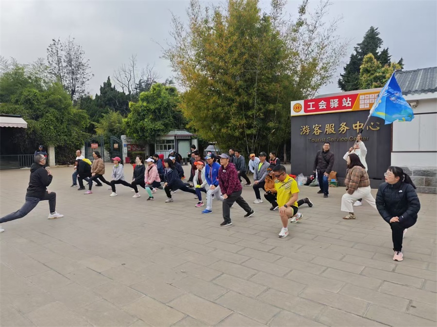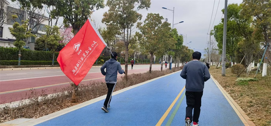 活動一開始,“石榴花開·彩云南”健康跑跑團(tuán)淇雷團(tuán)長強(qiáng)調(diào)了跑步注意事項并帶領(lǐng)大家做了熱身運動。隨后,跑跑團(tuán)成員們邁著矯健的步伐,從大觀公園庾園門口出發(fā),經(jīng)過中鐵公園,最終抵達(dá)滇池觀景碼頭,全程約7公里。大家沿著風(fēng)景如畫的滇池綠道奮力奔跑,天氣雖冷,但絲毫不影響大家的熱情。一路上大家互相鼓勵,互相加油,歡聲笑語不斷,充分展現(xiàn)了健康跑跑團(tuán)積極向上、團(tuán)結(jié)友愛的精神風(fēng)貌。返回集合點后,大家紛紛用鑄牢中華民族共同體意識相關(guān)內(nèi)容的宣傳圖片在“悅跑圈”打卡,并進(jìn)行體育健康知識交流分享。